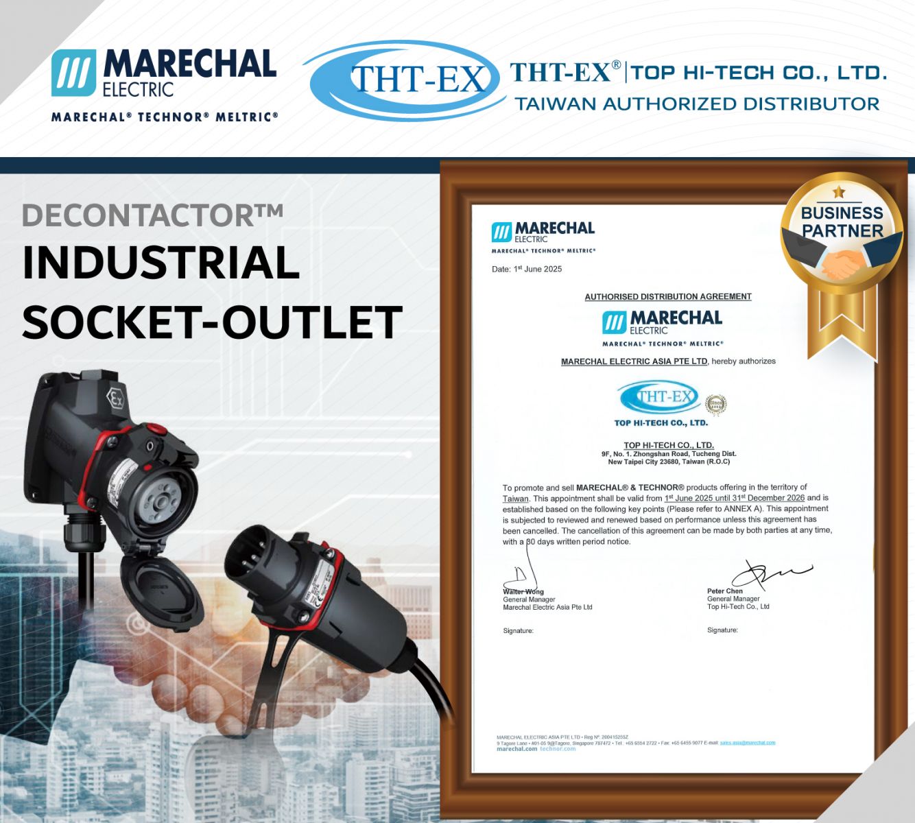 高電流防爆プラグ・ソケットのスペシャリストであるフランスのMARECHAL Electricが、THT-EXを台湾における正式代理店として認定しました!