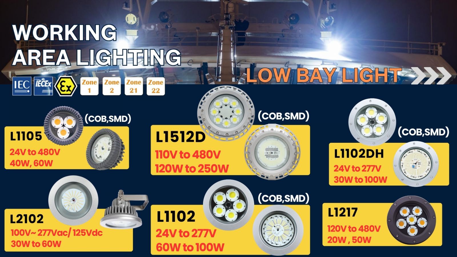 ✔ 包括的な防爆照明システム THT-EX LED防爆灯 C1D1、Zone 1 / Zone 21環境を完全にカバー。機関室、ポンプ室、貨物エリア、および屋外甲板での使用に最適です。